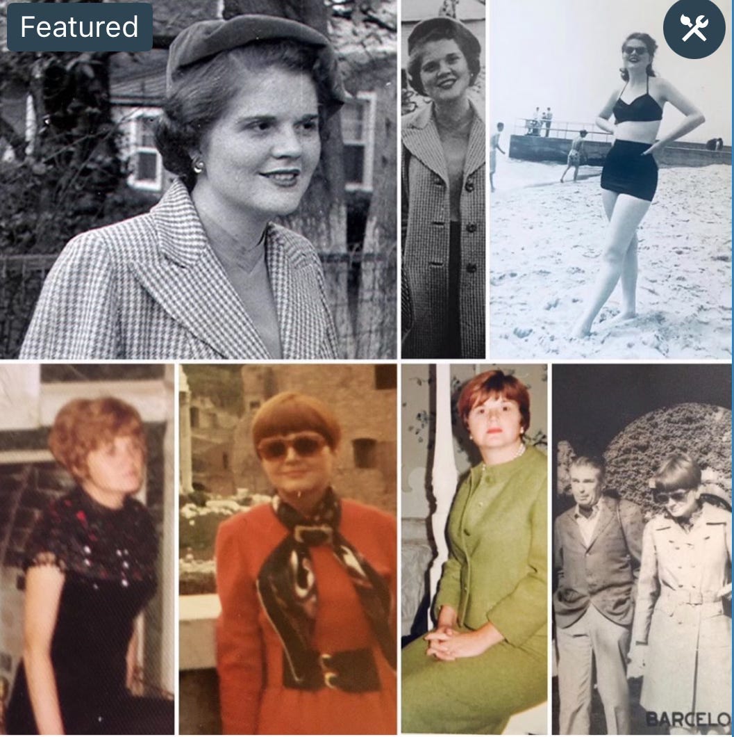The lawn would be littered with empty plastic pots, as she dug down deep in the dirt planting geraniums, petunias, and marigolds. I have a snapshot of her doing just this. Her sun kissed skin is freckled and bronze; her auburn hair peaks out from her scarf; and golden hoops dangle from her ears.
